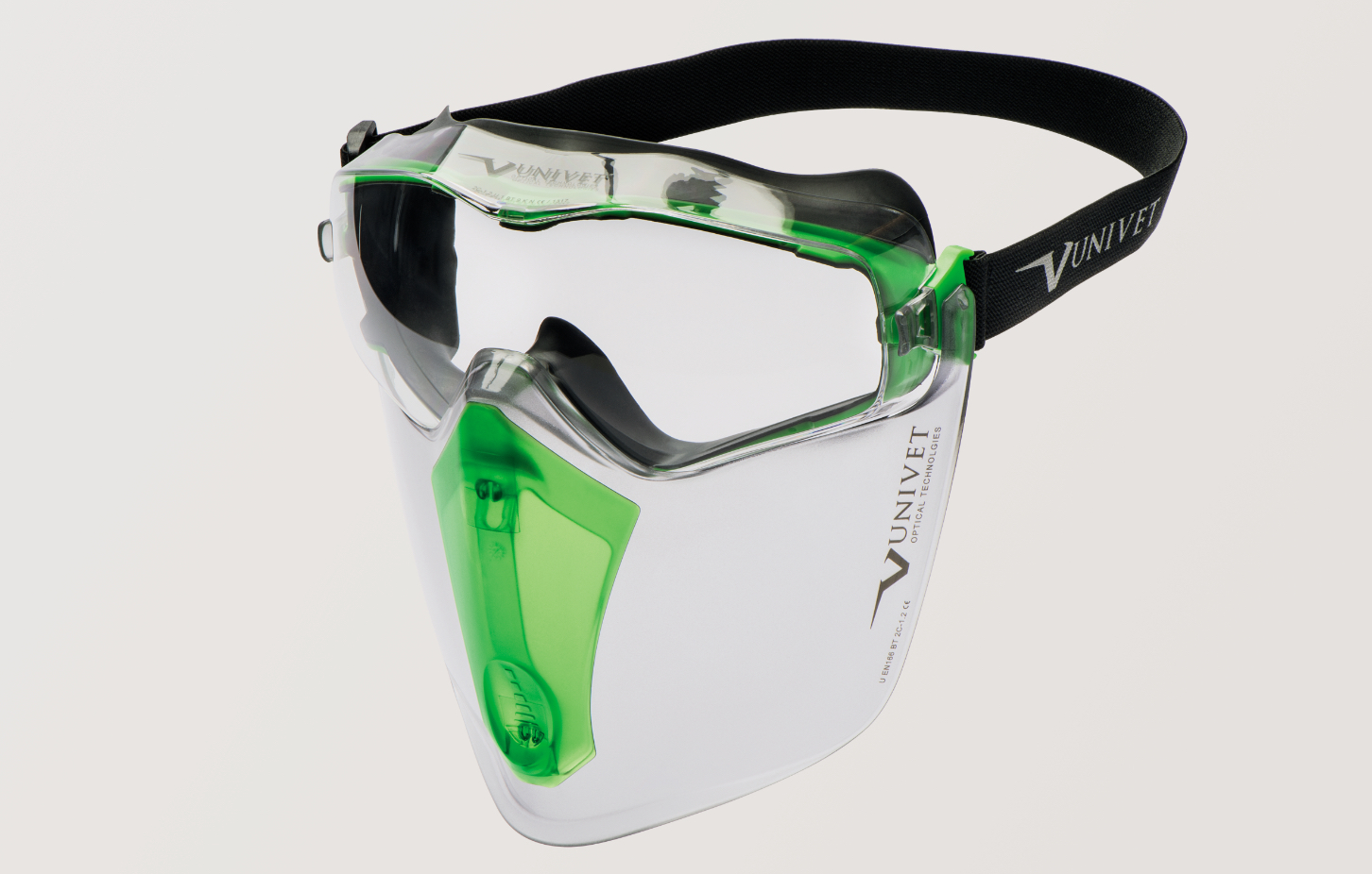 • Lente ampla em policarbonato com revestimento antiembaçante e antirrisco UDC